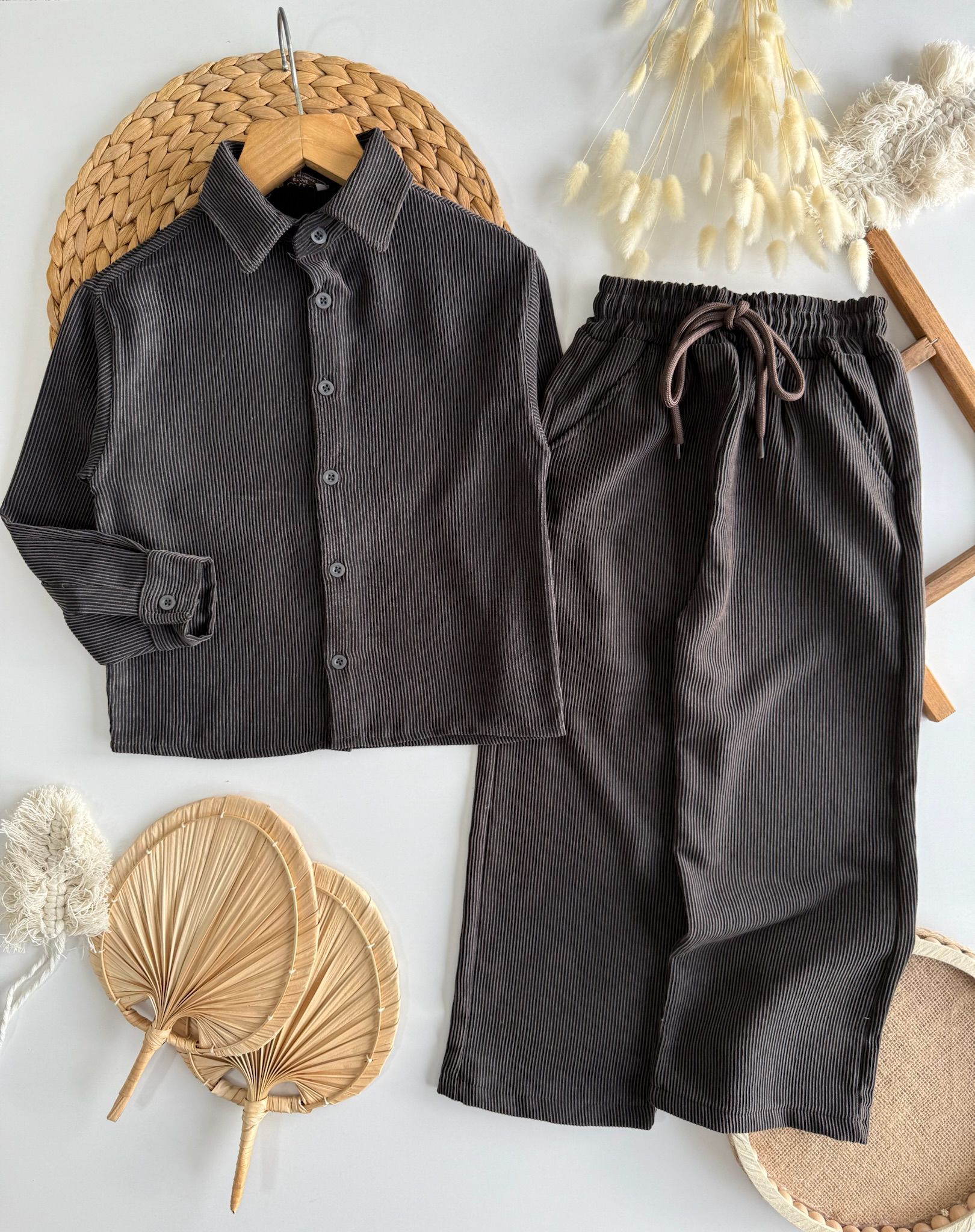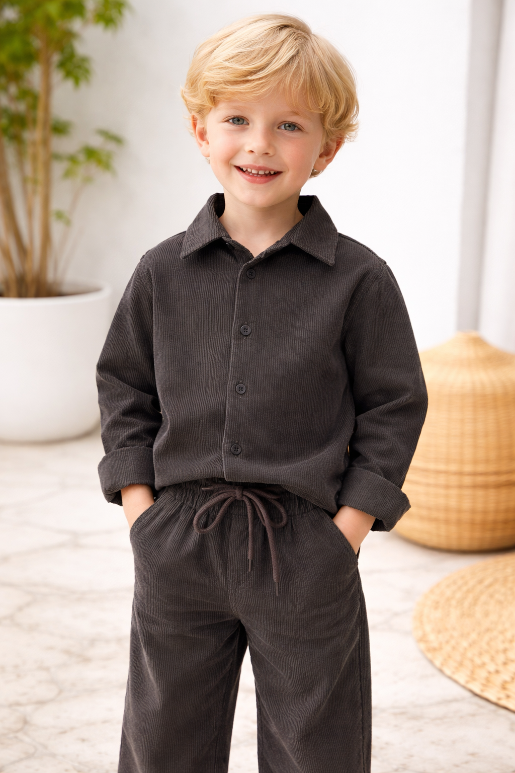 Antresit renk kadife erkek çocuk takım