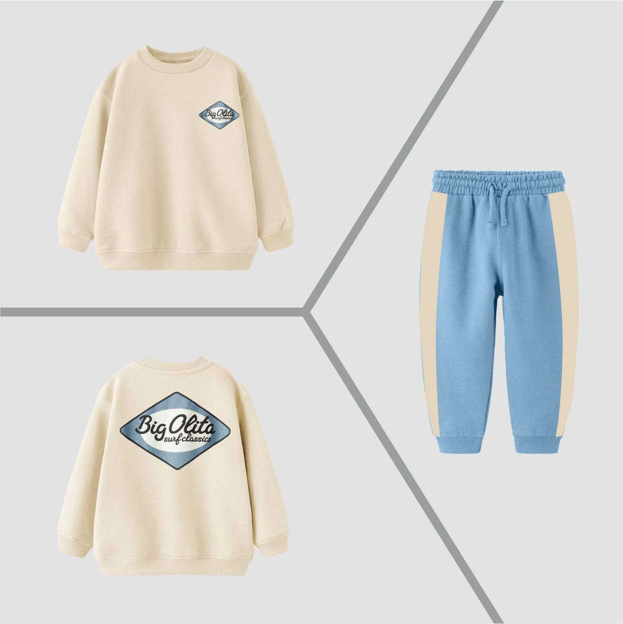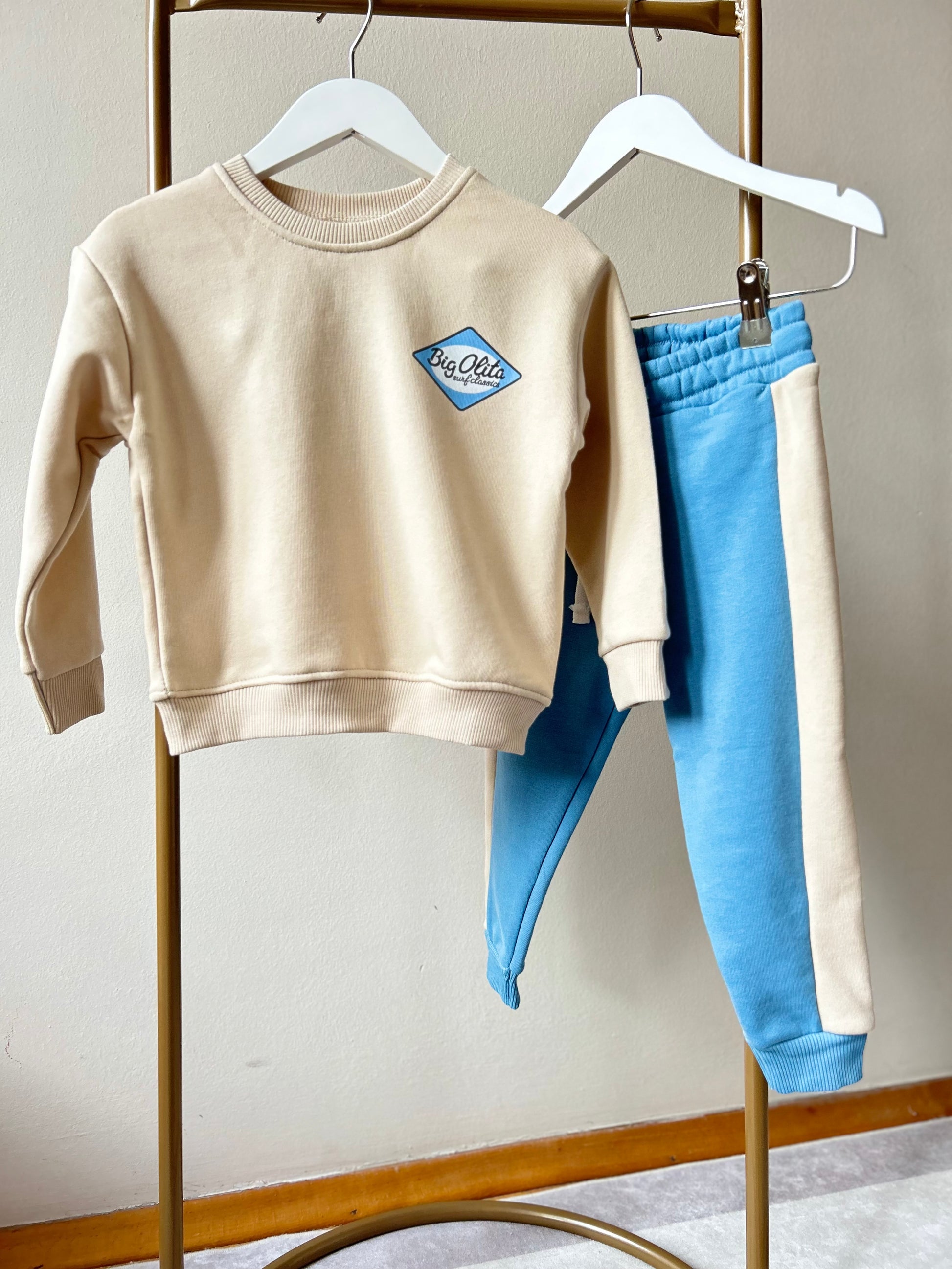 mavi-krem logolu 3 iplik erkek çocuk takım