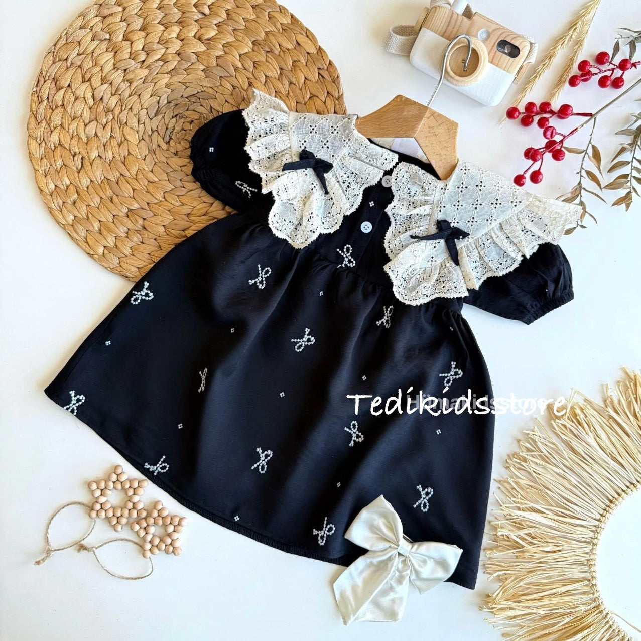 Siyah fiyonk elbise