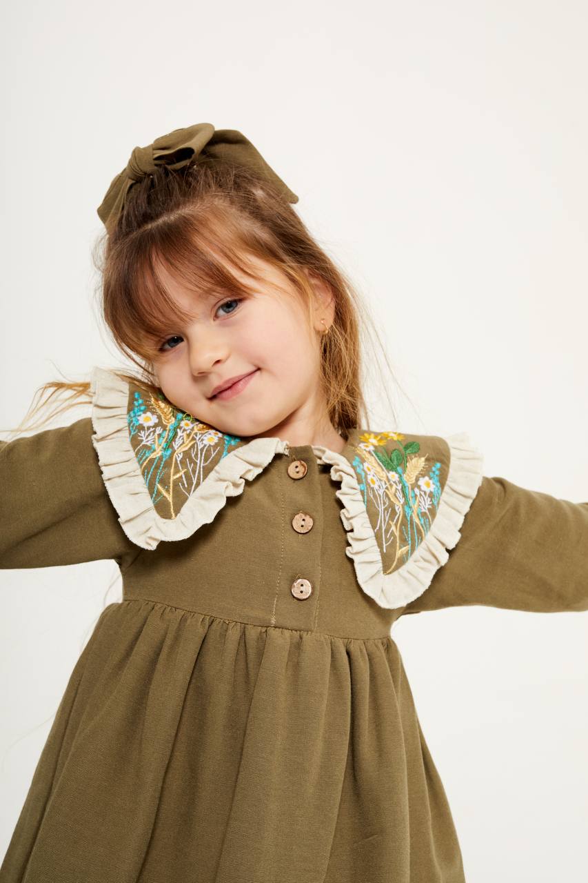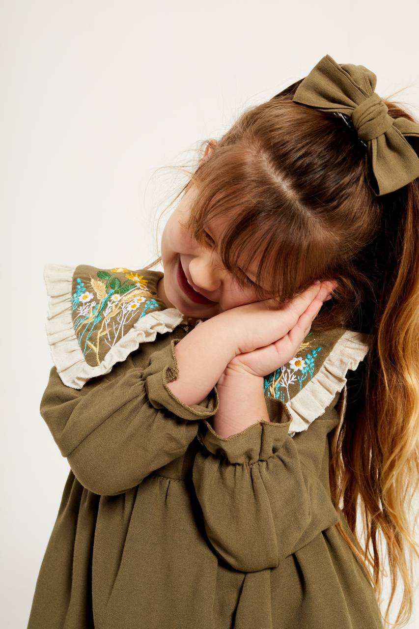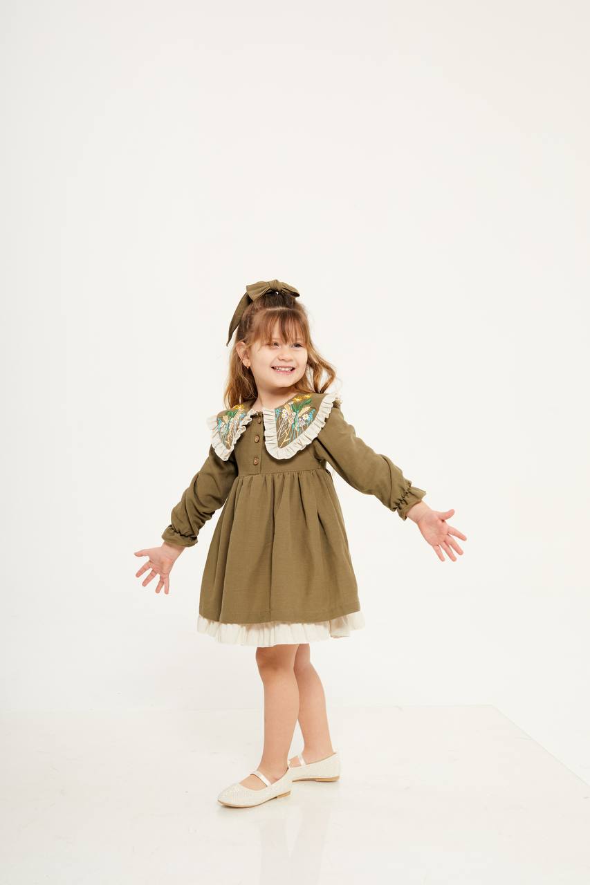 Yaka detay haki elbise