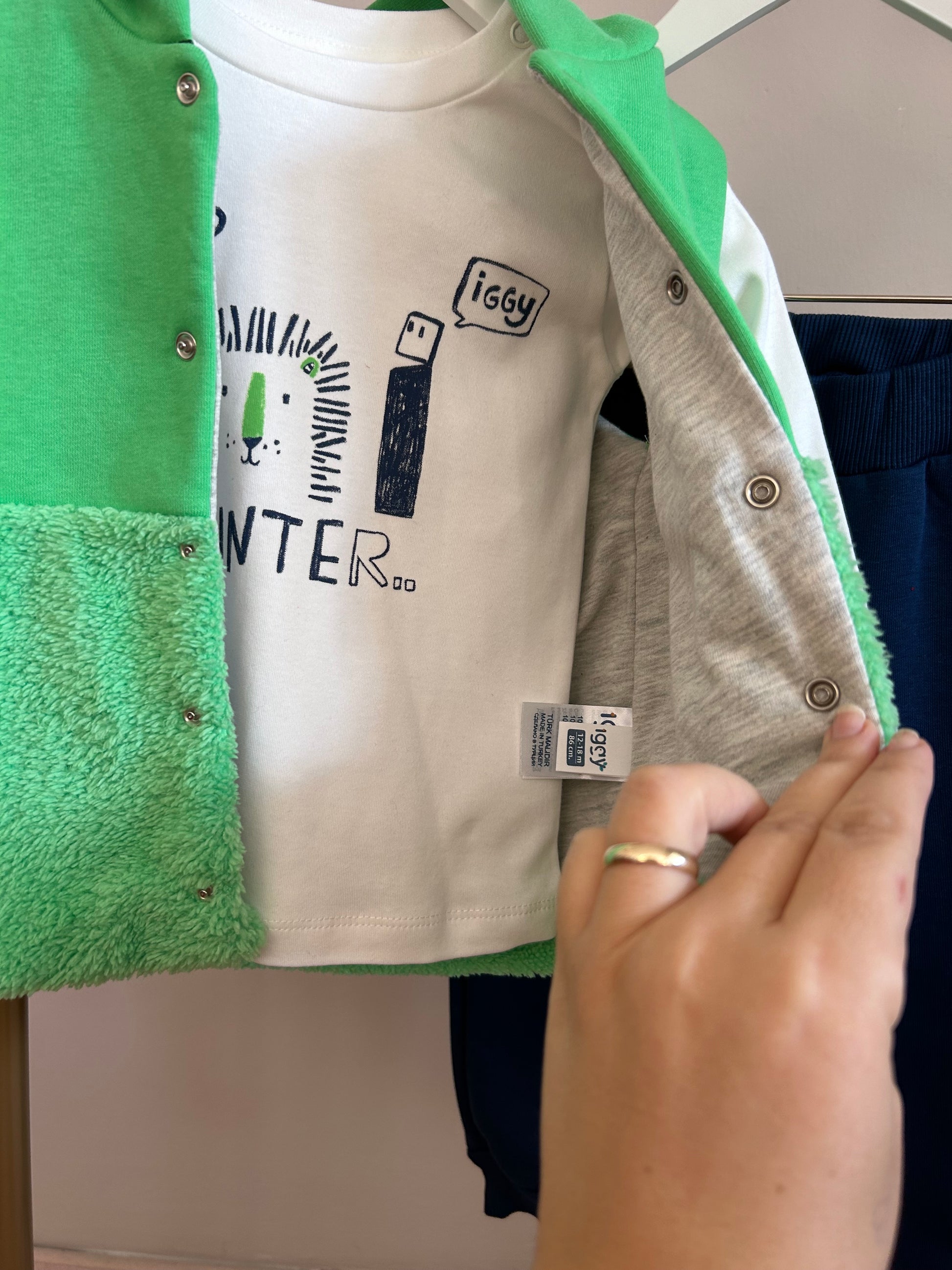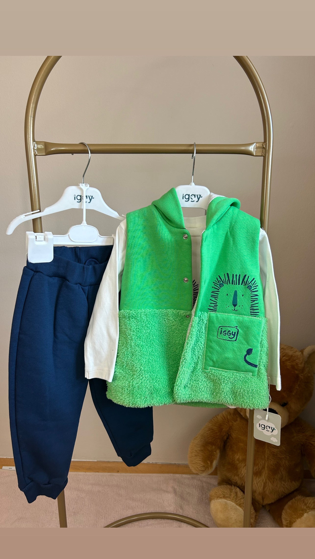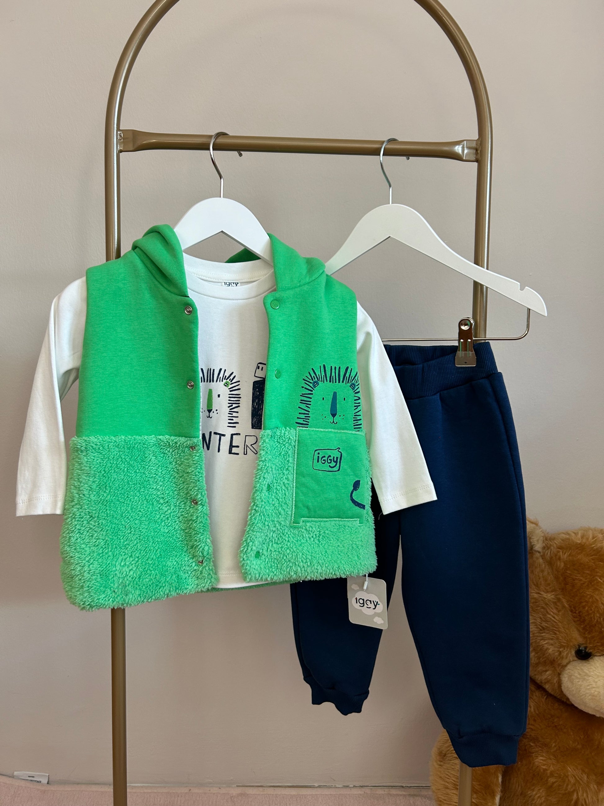 Yeşil yelekli erkek çocuk takım